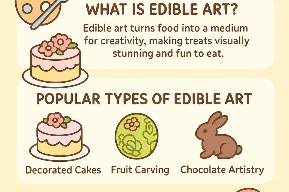 Edible art is where food becomes a creative playground. We’re talking intricately decorated cakes, beautifully carved fruits, and desserts so stunning you almost don’t want to eat them (almost). It’s that perfect blend of aesthetics and flavor that turns any celebration into something special—a feast for your eyes and your taste buds. So what exactly is edible art? It’s pretty… What Is Edible Art? Definition, Examples, and How It Works